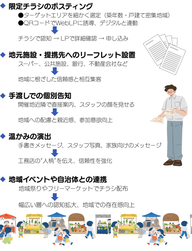 ここでは、地域密着型の強みを最大限に活かすための具体的なアナログ施策を紹介します。