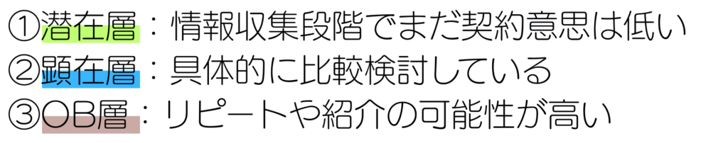 さらに、イベント後のフォロー体制を整えておくことで、潜在層も将来的な見込み顧客として育成できます。