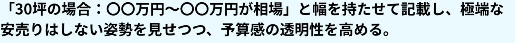時期と予算の早見表を活用し、お客様の「先回りした賢いメンテナンス」をサポートすることで、チラシの保存率と将来的な問い合わせの獲得につなげましょう。