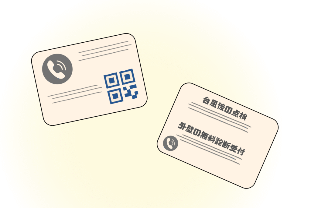 「台風後の点検」「外壁の無料診断受付」など、季節性を意識したひと言を添えると、“困った時の業者”として印象づけられます。