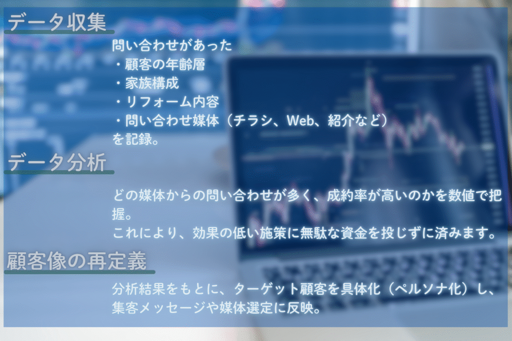 リフォーム営業で反響を増やすためには、単にたくさんの人に知ってもらうだけでなく、契約に繋がりやすい「質の高い顧客」を集めることが重要です。